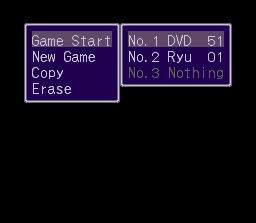 3. Wenn der Titelbildschrim erscheint hast du folgende Auswahlmöglichkeiten: Spiel starten, Neuer Spieler, Kopieren oder Löschen. Benutze das Control Pad, um