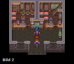 Du erkennst dieses Geschäft an dem Schild mit der Flasche am Eingang (2. Haus auf Bild 1). Hier gibt es die verschiedensten Gegenstände zu kaufen. Wenn du die A-Taste