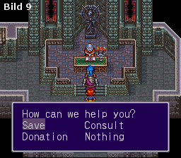 In der Kirche der Heiligen Eva (siehe Bild 9) kannst Du mehrere Aktionen ausführen. Du kannst speichern (wie im Drachenschrein), Dir wertvolle Tipps geben lassen, indem Du den 'Consult'-Befehl benutzt oder